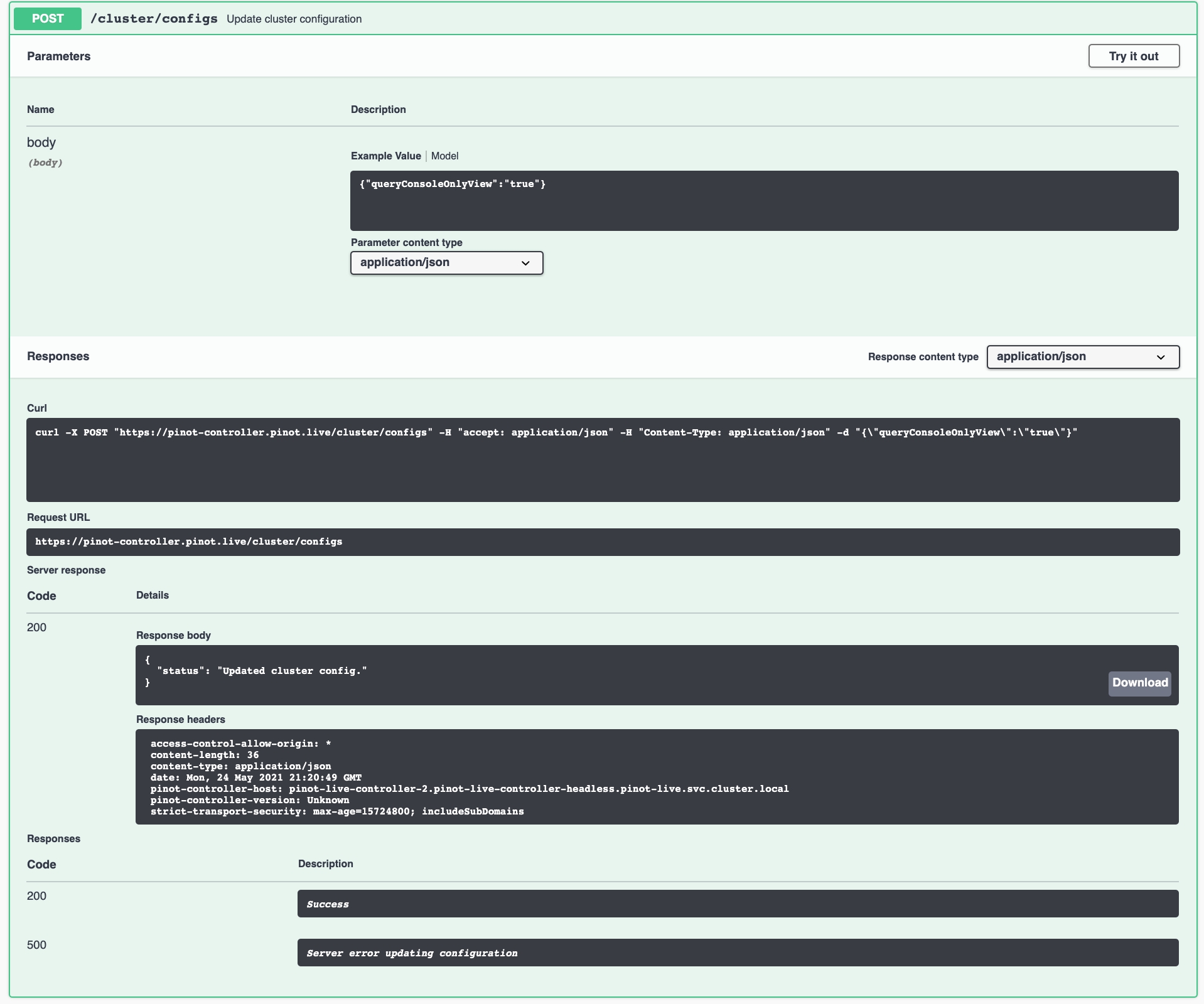 API. This property is checked when a Pinot node starts and has no effect once the node is connected to the cluster.