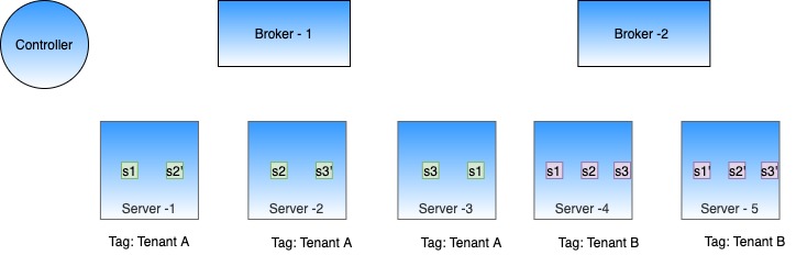 We can configure Table A with server tenant Tenant A and Table B with server tenant Tenant B. We can tag some of the server nodes for Tenant A and some for Tenant B. This will ensure that segments of Table A only reside on servers tagged with Tenant A, and segment of Table B only reside on servers tagged with Tenant B. The same isolation can be achieved at the broker level, by configuring broker tenants to the tables.