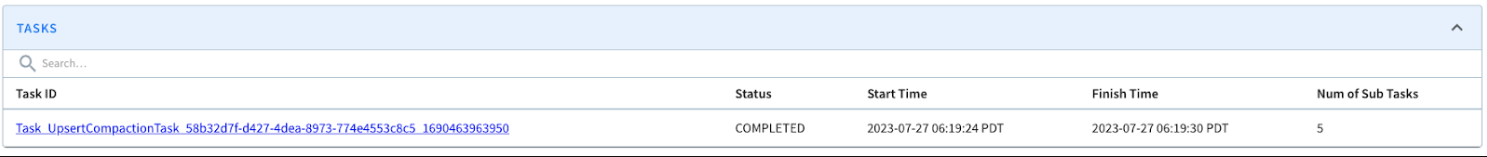 After the compaction tasks are complete, the Minion Task Manager UI reports the following.