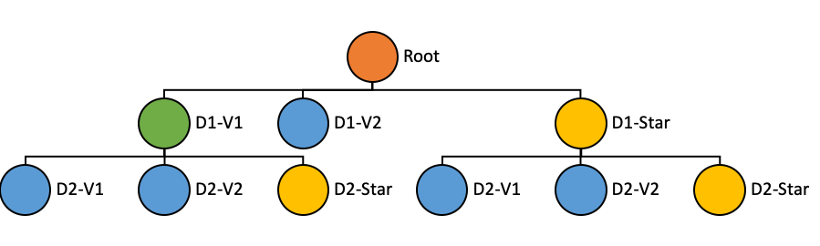 • Root node (Orange): Single root node, from which the rest of the tree can be traversed.