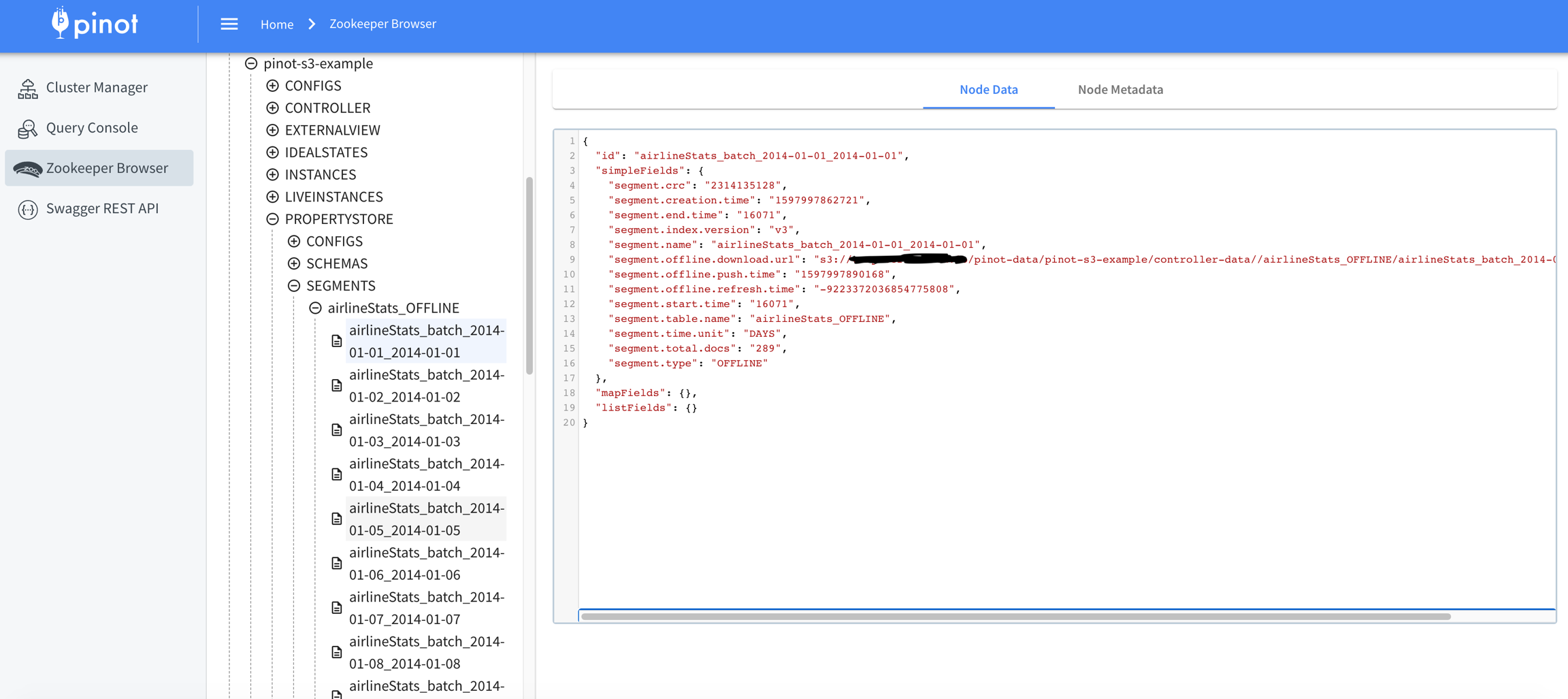 2020/08/18 16:11:12.295 INFO [SegmentPushUtils] [main] Sending table airlineStats segment URI: s3://my.bucket/examples/output/airlineStats/segments/2014/01/08/airlineStats_OFFLINE_16078_16078_7.tar.gz to location: http://localhost:9000 for