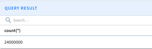 Submitting the query “set skipUpsert=true; select count(*) from transcript_upsert” before compaction produces 24,000,000 results: