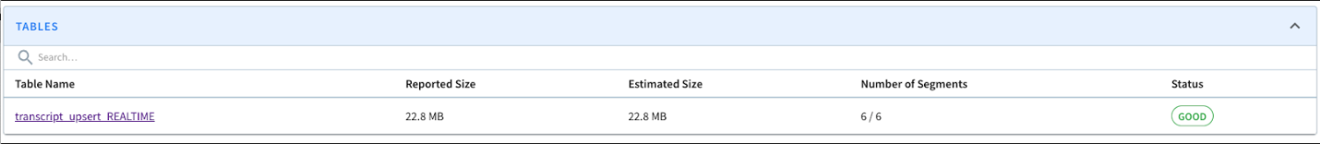 The following example includes a dataset with 24M records and 240K unique keys that have each been duplicated 100 times. After ingesting the data, there are 6 segments (5 completed segments and 1 consuming segment) with a total estimated size of 22.8MB.