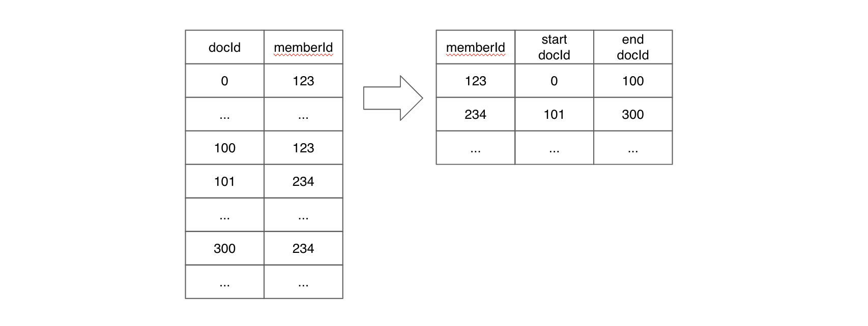 As shown in the diagram below, dictionary encoding can lead to numerous random memory accesses for dictionary lookups. In contrast, the raw value forward index allows for sequential value scanning, which can enhance query performance when applied appropriately.
