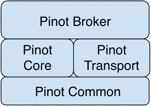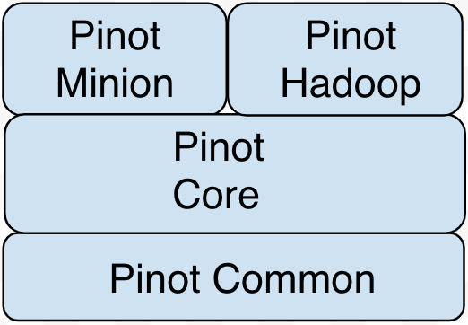 Pinot is a multi-module project, with each module providing specific functionality that helps us to build services from a combination of modules. This helps keep clean interface contracts between different modules as well as reduce the overall executable size for individually deployable component.