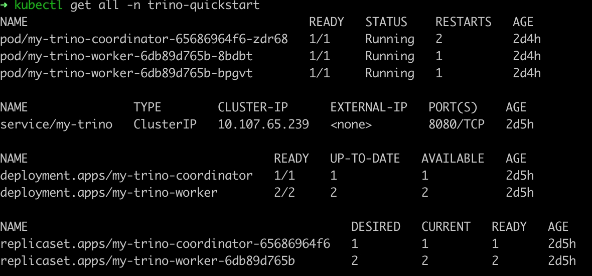 kubectl get pods -n trino-quickstart