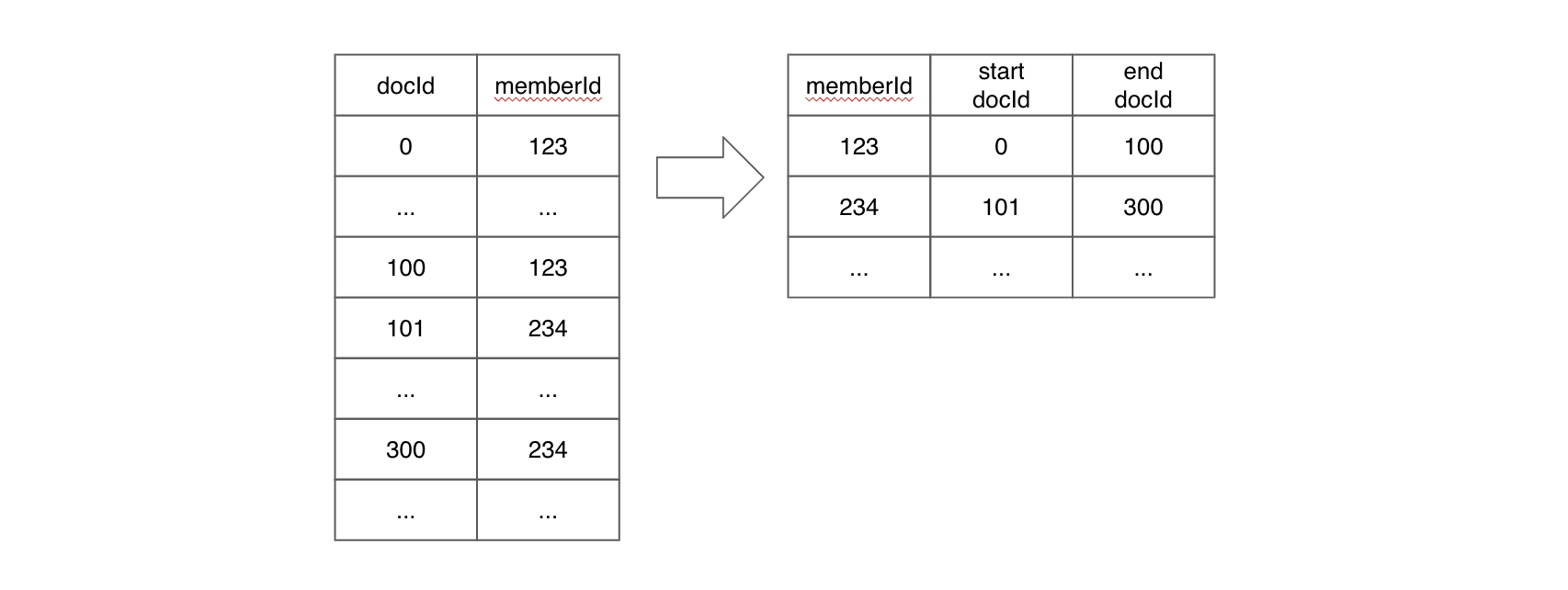 When a column is physically sorted, Pinot employs a sorted forward index with run-length encoding, which builds upon dictionary encoding. Instead of storing dictionary IDs for each document ID, this approach stores pairs of start and end document IDs for each unique value.