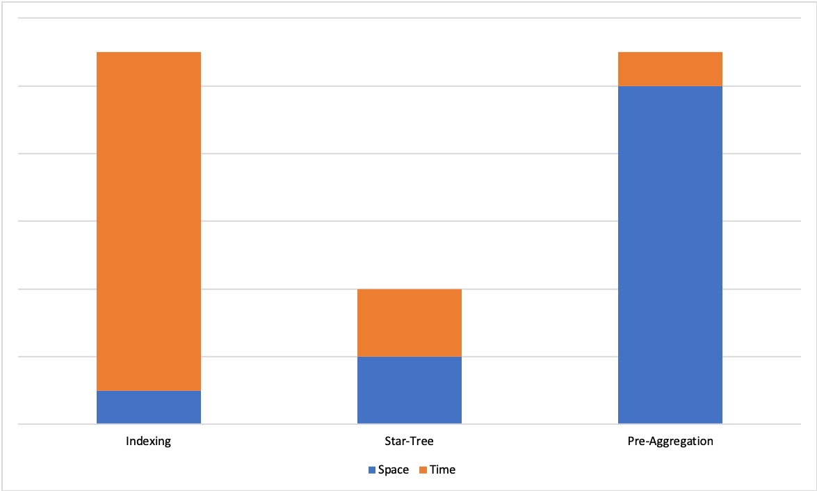 On one end of the spectrum we have indexing techniques that improve search times with a limited increase in space, but don't guarantee a hard upper bound on query latencies. On the other end of the spectrum, we have pre-aggregation techniques that offer a hard upper bound on query latencies, but suffer from exponential explosion of storage space
