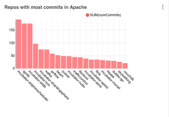 Repositories by number of commits in the Apache organization