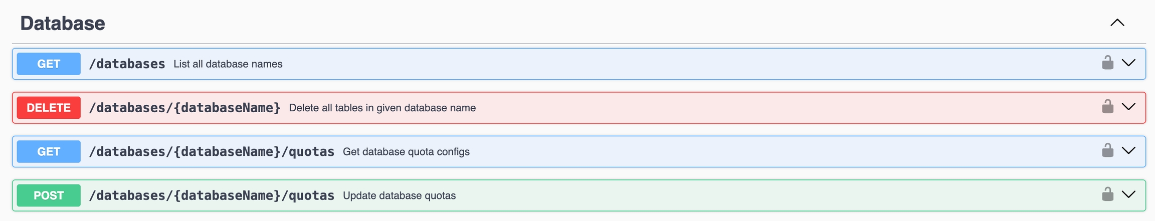 Apart from this all the endpoints that deal with table, table config and schema is database aware and requires user to pass the right database in the header else the request will fail.