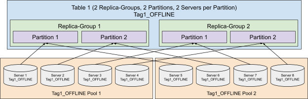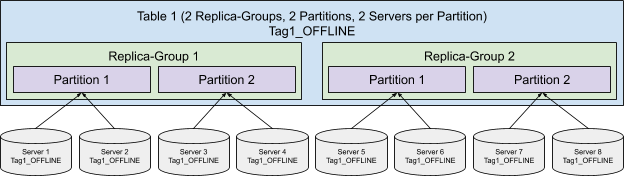 Similar to the Replica-Group Segment Assignment, in order to use the Partitioned Replica-Group Segment Assignment, servers not only need to be assigned to each replica-group, but also the partition within the replica-group. Adding the numPartitions and numInstancesPerPartition in the InstanceAssignmentConfig can fulfill the requirement.