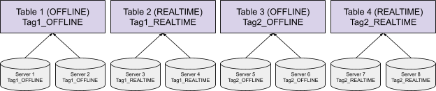 For performance critical use cases, we might not want to share the server resources for multiple use cases to prevent the use case being impacted by other use cases hosted on the same set of servers. We can use the Tag-Based Instance Assignment to achieve isolation for tables.
