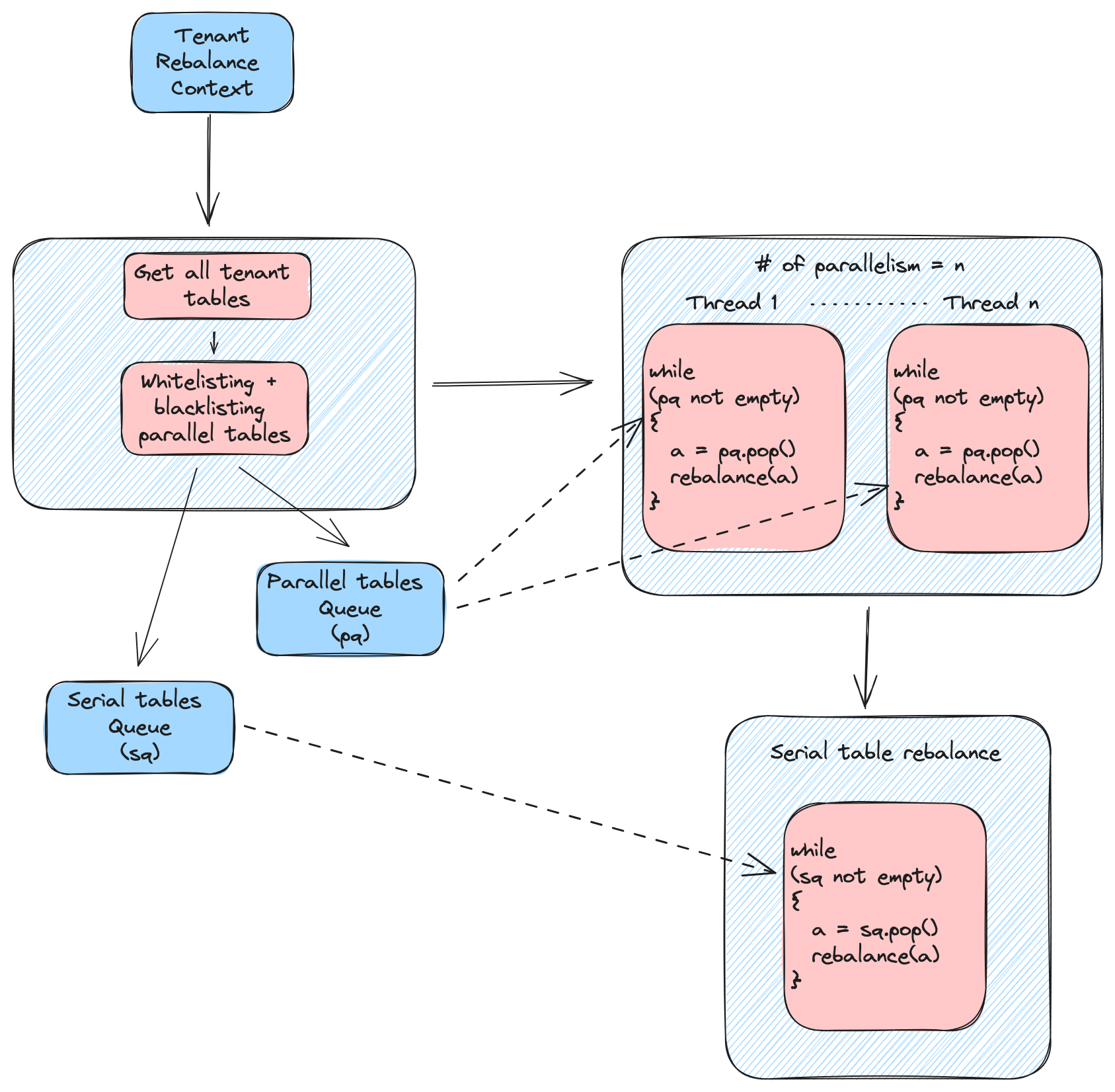 The tenant rebalance operation just provides a tunable orchestration of server rebalancing on multiple tables. Under the hood it leverages the existing server rebalance operation to perform the actual rebalance on each table. It provides the user a way to perform server rebalance on tables selectively in series and parallel. This is achieved using additional tuning parameters on top of usual rebalance parameters.