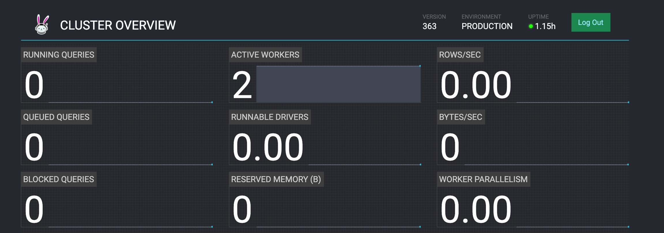 1.90 [2 rows, 1.65KB] [1 rows/s, 887B/s]Meanwhile you can access Trino Cluster UI to see query stats.