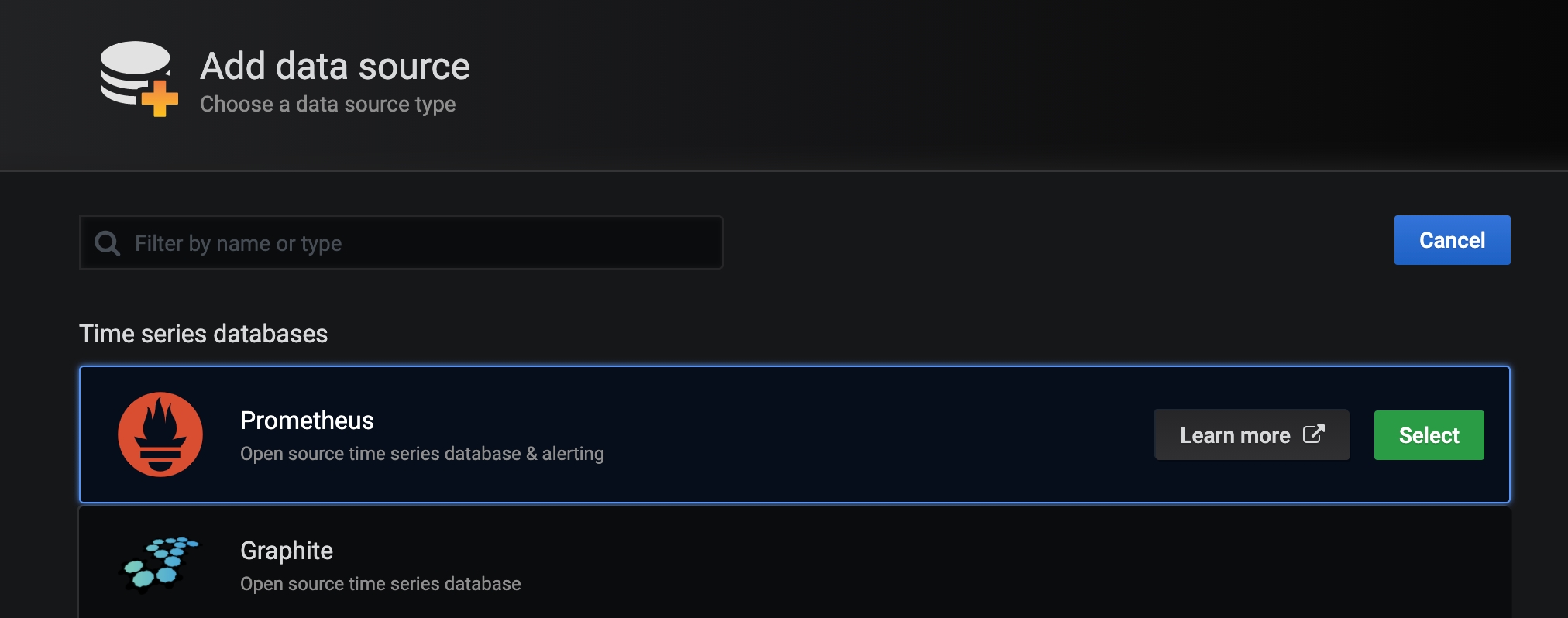 Click on Prometheus and set HTTP URL to : http://prometheus-server.prometheus.svc.cluster.local